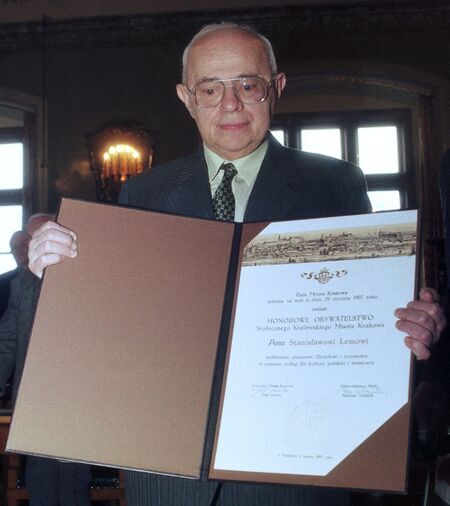 Stanisław Herman Lem, pisarz, twórca fantastyki naukowej, futurolog, krytyk. Urodzony 12 września 1921 r. we Lwowie, obecnie na Ukrainie. Studiował medycynę na Uniwersytecie Lwowskim, studia kontynuował na Uniwersytecie Jagiellońskim, gdy w 1945 r. osiadł w Krakowie w ramach repatriacji – od końcowych egzaminów odstąpił. Rozwinął rozpoczętą we Lwowie działalność pisarską, książkowo debiutował w 1951 r. powieścią Astronauci. Od 1983 r. zamieszkiwał z rodziną w Wiedniu, powrócił do Krakowa w 1988 r. Jego dzieła weszły do kanonu gatunku science fiction. Niezależnie od tego nurtu swojej twórczości publikował w czasopismach eseje oraz felietony literackie i popularnonaukowe. Najczęściej tłumaczony polski pisarz, jego książki ukazały się w ponad 40 językach, w nakładzie łącznym ponad 30 milionów egzemplarzy. Był kandydatem do Literackiej Nagrody Nobla (przyznano ją w 1980 r. Czesławowi Miłoszowi). Odznaczony Orderem Orła Białego, doktor h.c. UJ. Jego nazwiskiem oznaczono planetoidę (3836) Lem. Zmarł 27 marca 2006 r. w Krakowie; pochowany tamże na cmentarzu Salwatorskim.