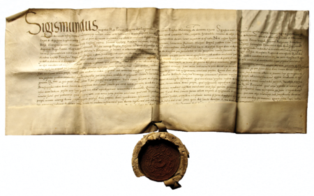 Dokument wydany w 1527 roku w Krakowie, w którym Zygmunt Stary zatwierdził rozstrzygnięcie krakowskiego sądu ławniczego, w którego składzie zasiadał Stanisław Salomon, dotyczące dziedziczenia ogrodów położonych w okolicy kościoła św. Floriana – oraz powiększenie zapisu imienia (Archiwum klasztoru oo. Dominikanów w Krakowie)