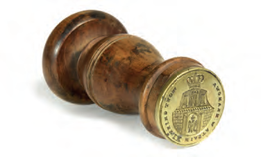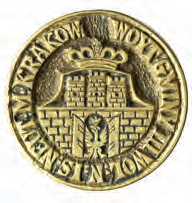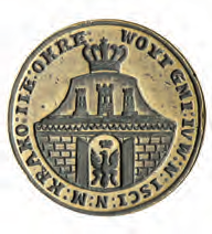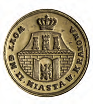| Gmina I | W zachowanej w Archiwum Narodowym w Krakowie kolekcji pieczęci gmin miejskich WMK tłoku pieczętnego Gminy I Miejskiej nie ma, z trudem zidentyfikowano tylko odciski w postaci pieczęci opłatkowych wójta tej gminy z lat 20. XIX w.; mogłoby to świadczyć o trudnych losach tego tłoku pieczętnego już w okresie WMK. Tutaj widok jednej ze wspomnianych pieczęci opłatkowych. | |