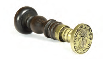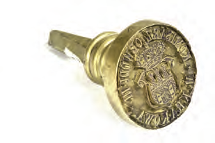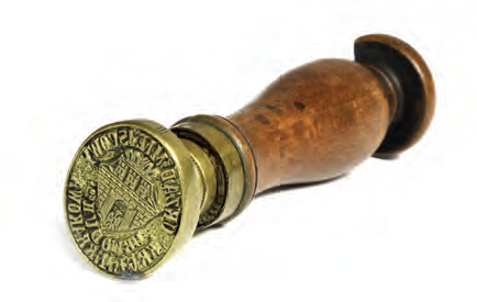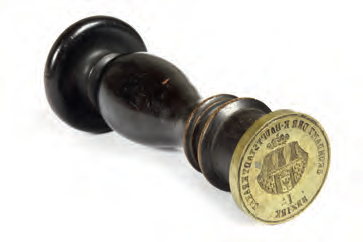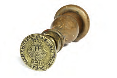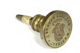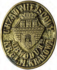 Plakat z obwieszczeniem podanym do wiadomości w 1892 r., dotyczącym spraw porządkowych; podział miasta na dzielnice administracyjne – obwody wykorzystano tu do przestrzennego określenia właściwej dla przedmiotu obwieszczenia części miasta (Archiwum Narodowe w Krakowie, sygn. 29-665-176) Z biurka urzędnika magistrackiego z przełomu wieków XIX i XX: 1. przybornik do pieczątek z blachy żelaznej cynowanej i miedzi wytłaczanej francuskiej firmy H & F; w komplecie: poduszka do tuszu, buteleczka po fioletowym tuszu do pieczątek firmy Tintenfabrikś Eduard Beyer z Chemitz w Saksonii, pieczątka z mosiężnym stemplem i drewnianym trzonkiem oraz pędzelek do czyszczenia pieczątki; 2. bibularz – bibuła, blacha cynowa, papier, skóra tłoczona; 3. szklany kałamarz i obsadka ze stalówką; 4. laska czerwonego laku firmy Iskra (później Iskra i Kamiński); 5. mosiężna pieczątka w drewnianym łożu do wyciskania numeru identyfikacyjnego, m.in. dla zakładania plomb urzędowych; 6. mosiężny datownik z drewnianym uchwytem; 7. lulka do papierosów ze srebra niellowanego i złoconego tombaku położona na popielniczce platerowanej srebrem; 8. kieszonkowy zegarek ze srebrną dewizką, przystosowany do postawienia jako zegarek biurkowy; 9. nóż do papieru z lanego brązu; 10. klepsydra o konstrukcji cynowej ze szklanym korpusem wypełnionym drobnym piaskiem; 11. posrebrzane puzderko na karty wizytowe (wizytownik); 12. okulary binokle sprężynowe w futerale krakowskiej firmy Zieliński. (Obiekty 1–2: Muzeum Uniwersytetu Jagiellońskiego, nr inw. 9436 i 9393; pozostałe obiekty ze zbiorów rodzinnych Bożeny i Marka Sosenków, Antykwariat Antyki-Sosenko w krakowskim Rynku Głównym)