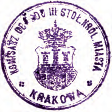 KOMISARZ OBWODU III STOŁ.[ECZNEGO] KRÓL.[EWSKIEGO] MIASTA * KRAKOWA *