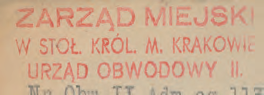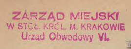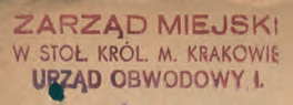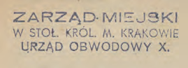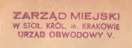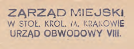 Z zasobów Archiwum Zakładowego Urzędu Miasta Krakowa pieczęć Miejskiego Urzędu Obwodowego VIII z lat powojennych, formalnie w użytku najdalej do 1950 r., kiedy to wprowadzono nowy wzór pieczęci dla urzędów obwodowych, oraz pieczęć Miejskiego Urzędu Obwodowego V z jego adresem przy ul. Rakowickiej 1; prawdopodobnie początkową treść tej pieczęci „W M.” („W Miejskim”) odcięto w 1950 r., gdy z nazwy urzędów obwodowych usunięto określenie „miejski” (widoki oryginalne i lustrzane odbicia).