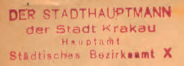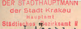 Po przejęciu Zarządu Miejskiego przez władze okupacyjne większość przedwojennego personelu urzędniczego pozostała w służbie miejskiej na swoich stanowiskach (oprócz wyższych stanowisk kierowniczych obsadzonych przez okupanta), chroniąc na swoim miejscu pracy to, co ochronić się dało; najniższą, choć oczywiście trudną, ceną było zadeklarowanie lojalności wobec nowej administracji – tu tego rodzaju akt złożony w sierpniu 1941 r. w obecności kierownika miejskiego urzędu obwodowego (Archiwum Zakładowe Urzędu Miasta Krakowa, sygn. spis 3759/6392)