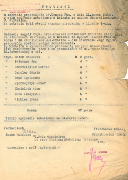 Inauguracja w 1951 r. Dzielnicowej Rady Narodowej w Nowej Hucie otwarła przejście z trwającego ponad stulecie okresu dzielnic – pomocniczych obwodów, do okresu dzielnic – zasadniczych jednostek zrównanych pozycją z gminami, które przetrwają w mieście do roku 1991. Wybór w pierwszej tego typu krakowskiej dzielnicy jej zwierzchnika zapoczątkował wdrażanie całkowicie odmiennego od poprzednich modelu administrowania częściami wielkiego miasta. Całkowite wyparcie „starego” przez „nowe” nastąpi w roku 1954, gdy wygaszonych zostanie 10 obwodów, a do Dzielnicy Nowa Huta dołączy 5 kolejnych dzielnic obejmujących już obszar całego Krakowa (Archiwum Narodowe w Krakowie, sygn. 29-703-2534; Archiwum Zakładowe Urzędu Miasta Krakowa, sygn. AB Nr 3204330) Lata 50. XX w. były szczytowymi pod względem nagminności podejmowanych, a ściślej wymaganych obywatelskich czy pracowniczych czynów społecznych. Okazje ku temu były wzniosłe lub prozaiczne, związane z manifestacją radości lub smutku. Z jakimi uczuciami w marcu 1953 r. pracownicy Urzędu Obwodowego IV przystąpili do uchwalonego przez „samych siebie” czynu społecznego z okazji zgonu Józefa Stalina, owiane jest tajemnicą – w każdym przypadku planty w al. Słowackiego na odcinku od ul. Prądnickiej do ul. Łobzowskiej zostały oczyszczone i obowiązkowemu rytuałowi stało się zadość, o czym raportował kierownik Urzędu Obwodowego IV Bolesław Baran (Archiwum Narodowe w Krakowie, sygn. 29-01-3309, nlb)