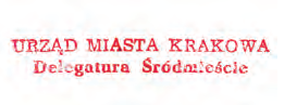 | Odciski pieczęci delegatur Urzędu Miasta Krakowa w 4 dzielnicach miasta obowiązujące w latach 1990–1991 | ||