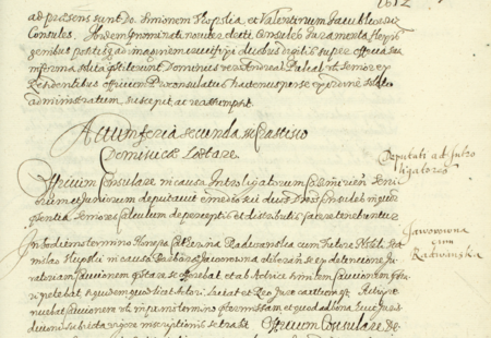 Z księgi radzieckiej Kazimierza obejmującej lata 1610–1612: fragment wpisu dokumentującego wybór rady urzędującej na rok 1612, z Walentym Jakubowiczem w składzie – oraz zbliżenie zapisu imienia (Archiwum Narodowe w Krakowie, sygn. K 31, s. 931)