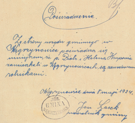 Z kopiarza dokumentów opactwa tynieckiego pierwsza strona wpisu przywołującego dokument z 1612 roku, mocą którego opat i konwent Bernardynów tynieckich zawarli z Melchiorem Michałowskim z Michałowa, podstarościm krakowskim, umowę dożywotniej dzierżawy należącej do zakonu wsi Węgrzynowice; jak to opisano w dokumencie, benedyktyni decyzję o wydzierżawieniu Węgrzynowic podjęli po wizji lokalnej ukazującej, że we wsi poddani, których było kilka, zniszczeni i chałupy niektórych rozebrane i w niwecz obrócone. Budowanie w folwarku pognojone i popsowane, role spłonione, bydło i dobytek zabrany (Biblioteka Jagiellońska, rkps 5280 III, s. 79)Z prac przedwojennej gminy Węgrzynowice rutynowy dokument wydany w 1924 roku oraz z działalności powojennej gromady Węgrzynowice dokument wystawiony w 1953 roku, w ówczesnym czasie także rutynowy (Archiwum Narodowe w Krakowie, sygn. 29/286/56, nlb.; sygn. Gm. Ru. 34, s. 235)(1924) Odciski pieczęci urzędowych Węgrzynowic z lat 1924 i 1953 (Archiwum Narodowe w Krakowie, sygn. PUZKr 56, nlb.; sygn. Gm. Ru. 34, s. 349)(1953) Odciski pieczęci urzędowych Węgrzynowic z lat 1924 i 1953 (Archiwum Narodowe w Krakowie, sygn. PUZKr 56, nlb.; sygn. Gm. Ru. 34, s. 349)