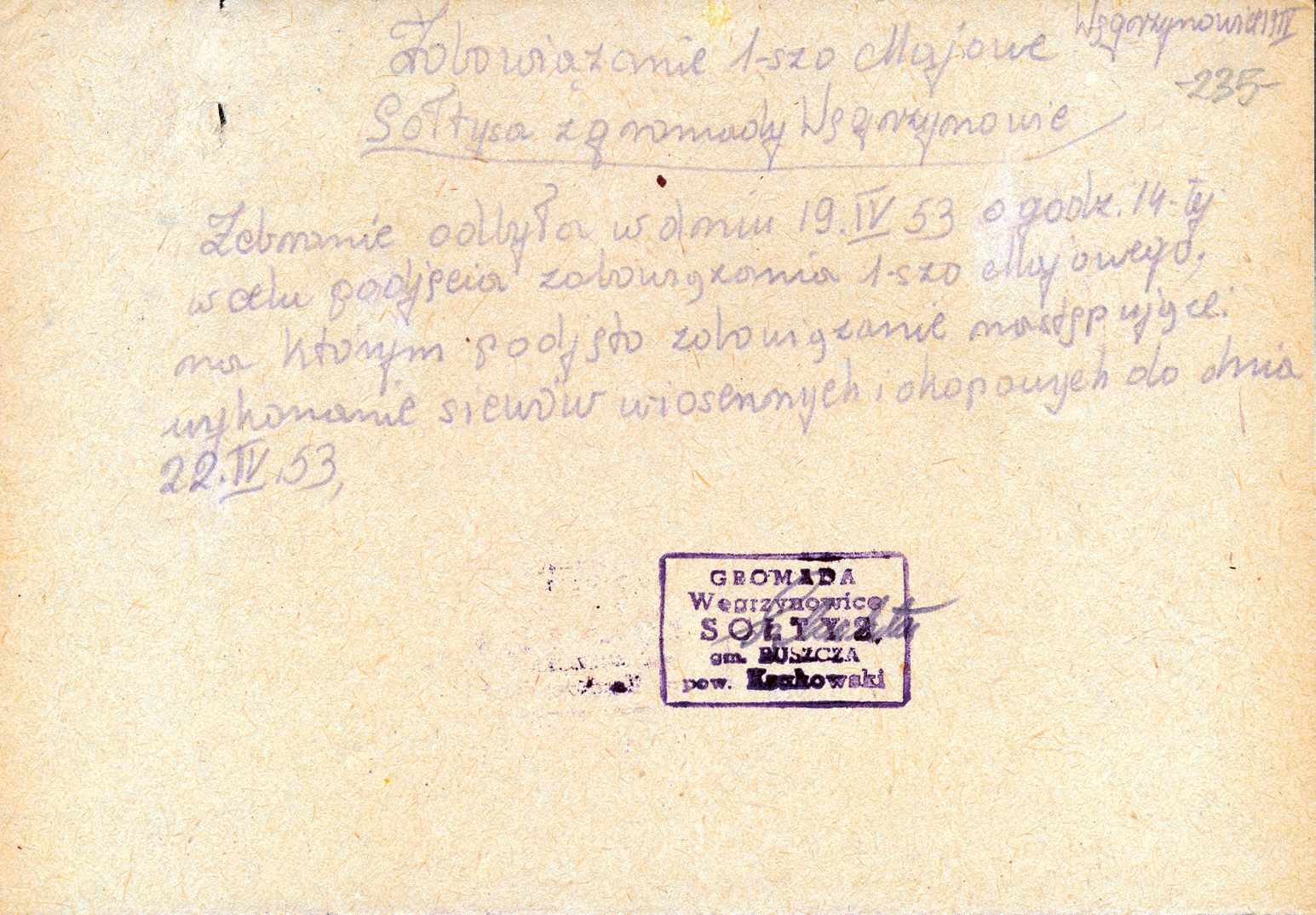Wieś podległa parafii pw. Wszystkich Świętych w Górce Kościelnickiej. W godle na pieczęci z połowy XIX wieku włościanin w polu z sierpem w ręce, na pieczęci z okresu II Rzeczypospolitej oko opatrzności.